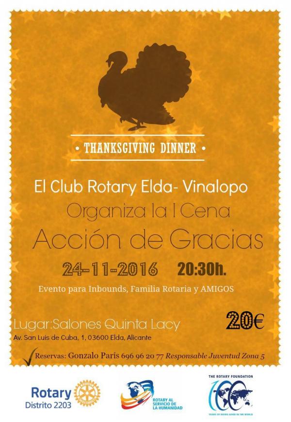 JUEVES, 24 DE OCTUBRE DE 2016Cena de Acción de Gracias - Thanksgiving Dinner